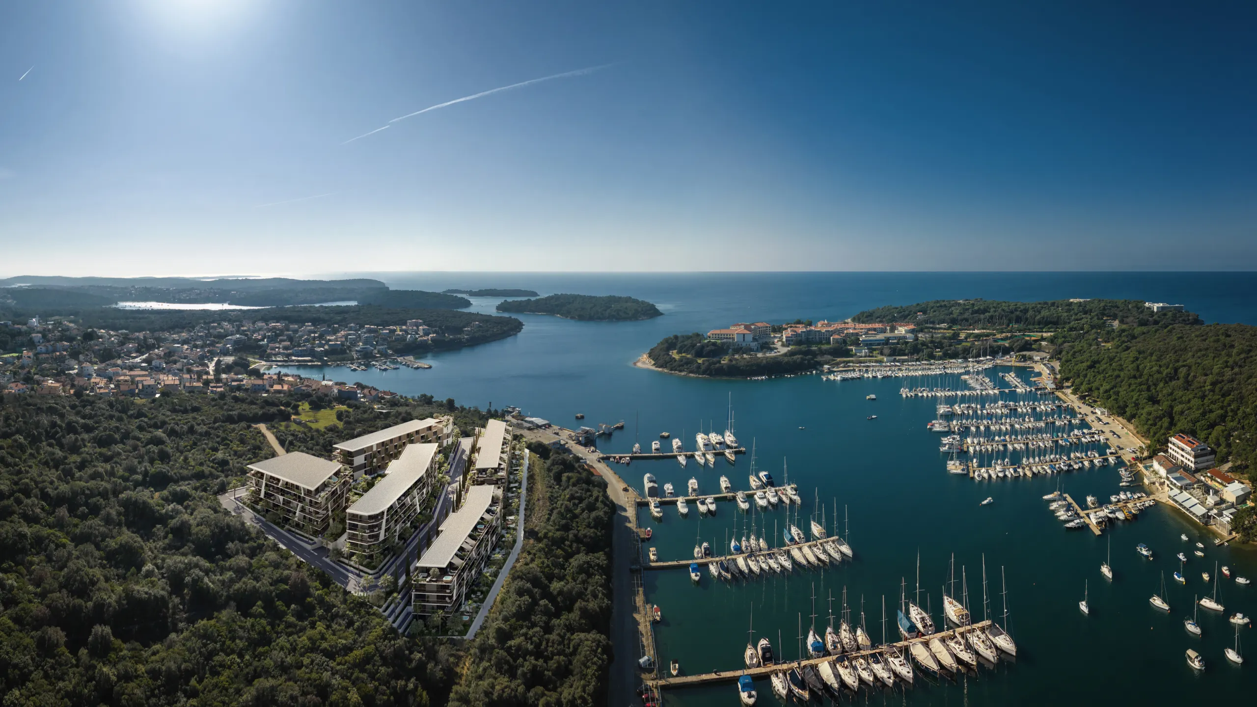 Osim što je okružena kristalno čistim morem,panoramom koja oduzima dah i bujnom mediteranskom vegetacijom,Marina Sky nudi i arhitektonski dizajn koji harmonično spaja suvremene trendove s tradicionalnim istarskim elementima.